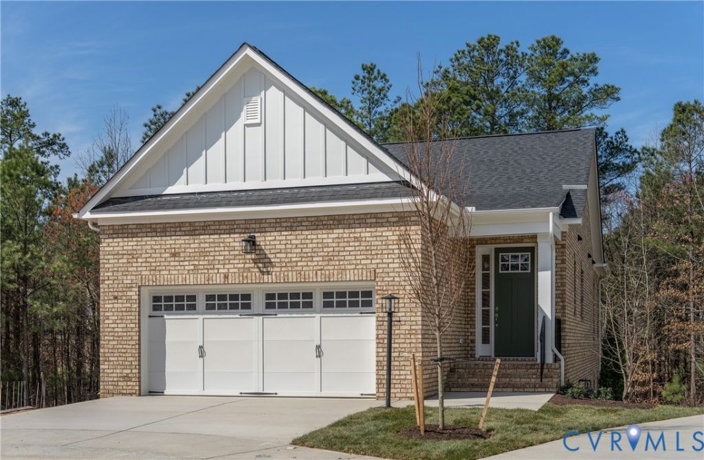 MOVE IN READY! Rare four sided brick exterior home backing to wooded area. The Ridge Terrace offers main level living and a partially finished basement that includes 2 additional bedrooms, additional full bath, rec room with cafe rough-in, and additional conditioned storage. The first floor primary suite has a large walk-in closet, ceramic tiled shower, a double vanity and private water closet. The kitchen includes quartz countertops, white cast iron apron front sink, stainless built-in wall microwave/convection oven and gas gourmet cooktop with custom hood. The kitchen opens straight onto the dining area and family room creating the space that will quickly become the heart of your home! There is a deck off the family room for enjoying the outdoors. Enjoy the large community pool and clubhouse, or walking trails along the community lake. W Broad Village is an active community with conveniences like popular restaurants, grocery stores, recreation and retail shopping!