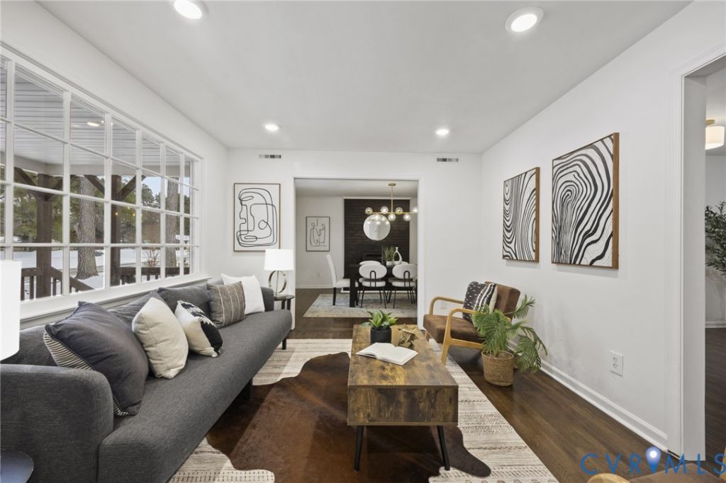 Tucked away in the quiet, rural charm of South Chesterfield, this beautifully updated home offers the space and style you've been searching for. While it looks cozy from the street, this is one of the largest single-level homes in the neighborhood - with 4 bedrooms, 2.5 baths, and a bonus flex space that offers room to grow, work, or unwind. Inside, you'll find refinished original hardwood floors and a thoughtfully redesigned kitchen featuring top-tier cabinetry and sleek countertops. The updated bathrooms bring a designer touch - from bold black tile in the hall bath to a crisp white walk-in shower in the owner's suite. A spacious walk-in closet with built-ins completes the primary retreat. Outside, enjoy nearly half an acre of space and a newly redone back deck, perfect for morning coffee or evening gatherings under the stars.